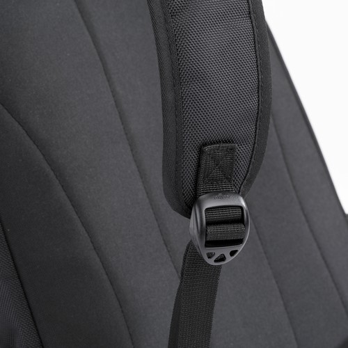 Light and roomy, it features one main compartment, equipped with a pocket for a 15” laptop, pockets for small business accessories and 2 side pockets. Additional reinforced back, reinforced braces, gun metal metal zippers and colourful stitching.