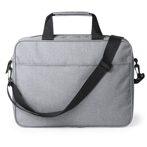 Document bag with zipper closure in an elegant grey colored 600D polyester. External pocket with velcro closure, comfortable reinforced handles, adjustable shoulder strap with carabiner closure and accessory at the back for trolley bar adjustment.