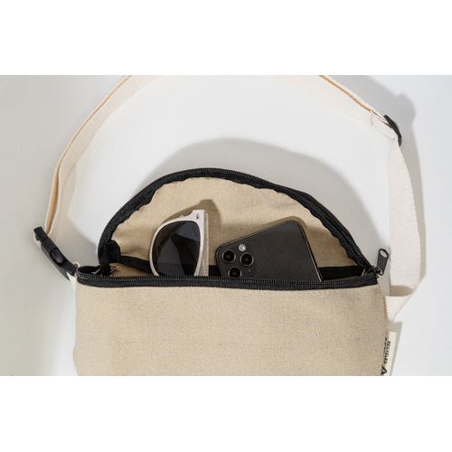 Recycled canvas waist bag with zipped compartment and adjustable strap. 70% recycled cotton and 30% recycled polyester. With distinctive recycled cotton label.
