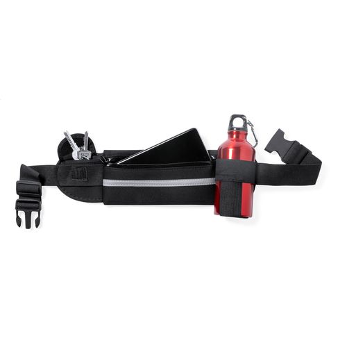 Waist bag in soft shell with 1 zipped compartment, 1 small pocket and elastic bottle holder, reflective band and adjustable strap. For promotional use only, the product does not qualify as a Personal Protective Equipment.