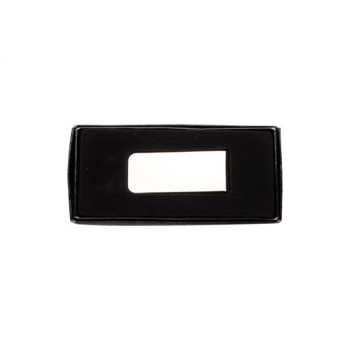 Chrome plated money clip in black gift box.