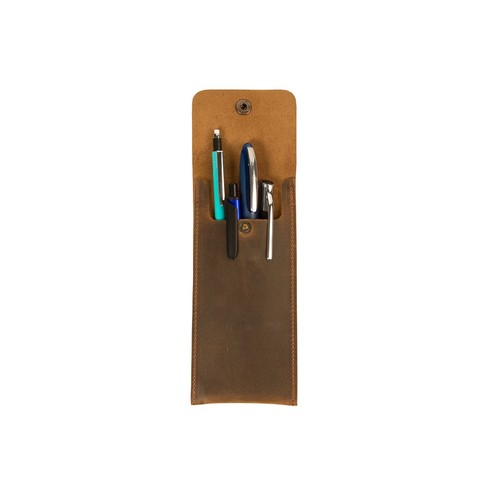 Genuine Leather Snap Pen Sleeve Case