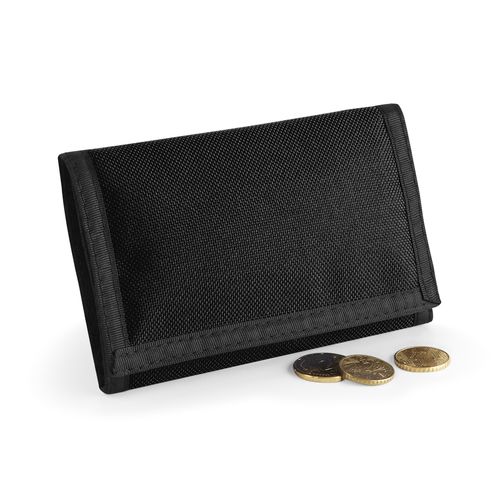 Ripper Wallet. 600D Polyester. Clear identification window. Cash sleeve. Secure expandable coin pocket. Rip-Strip™ closure