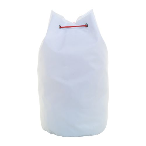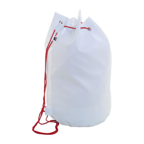 Custom made, drawstring sailor bag in 600D RPET polyester, with coloured strings. With all over sublimation printed graphics and distinctive RPET label. MOQ: 25 pcs.