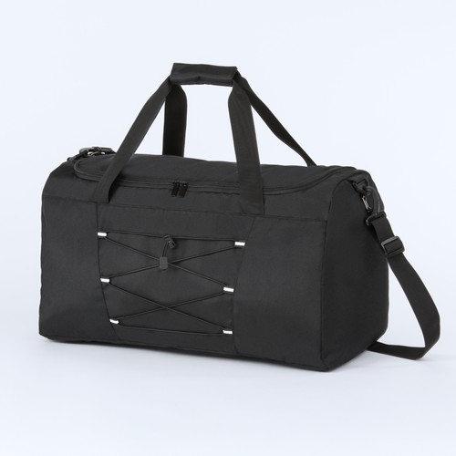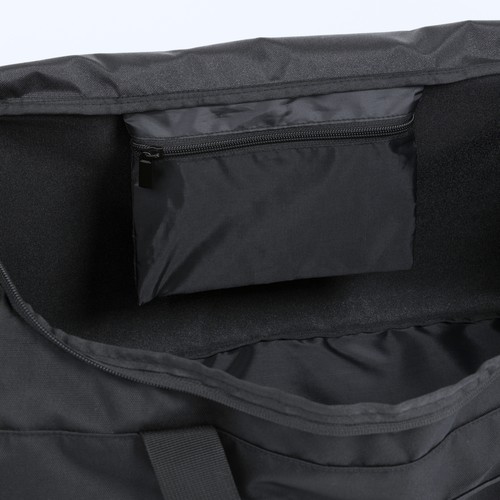A black sports bag with a modern, minimalist design, made from durable polyester 900D, providing excellent resistance to mechanical damage and weather conditions. Its universal design is neutral and suitable for both women and men, making it perfect for the gym, sports trips, or short travels.