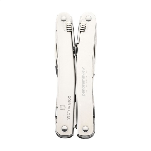 Multitool by Victorinox with tools made of 100% recycled steel. 11-piece with 24 functions: needle nose pliers, wire cutters for thin and soft wire up to 40 HRc, wire cutters for hard wire, large knife, can opener with screwdriver 3 mm, bottle opener with screwdriver 6 mm, crate opener, wire bender with screwdriver 2 mm, reamer with punch and sewing awl, tow hook (for example for loosening tent lines), scissors, wood saw, metal saw, metal file, cross-head screwdriver (Philips 1/2), longitudinal cutter for cable sheathing, cross-cut cutter for cable sheathing, wire stripper and scraper, cord eye, coupling piece for corkscrewing and carrying clip. Including a sturdy leather case with which you can easily carry the multitool on your belt. Includes instruction manual and lifetime warranty on material and manufacturing defects. Victorinox knives are a worldwide symbol for reliability, functionality and perfection. Please note local rules may apply regarding the possession and/or carrying of knives or multitools in public. Packed individually.