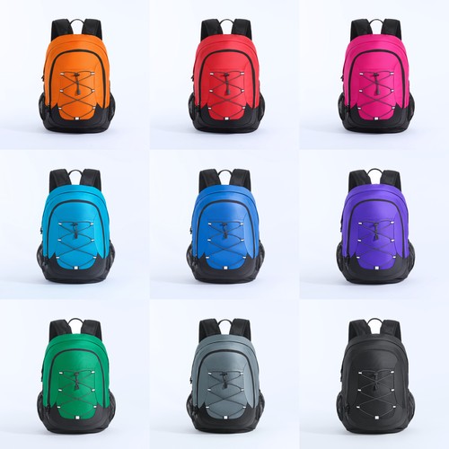 A functional sporty two-compartment backpack in a vibrant color with contrasting black panels on the bottom and sides. The front features an elastic bungee cord system for attaching additional gear.