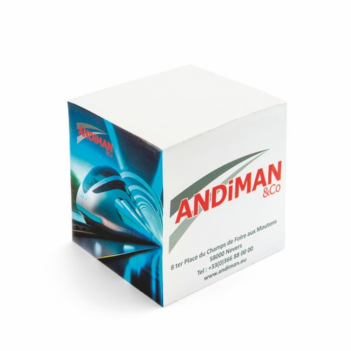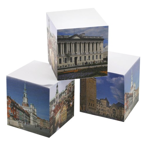 A cube made of 90g adhesive paper with printing on the side walls. The transfer printing technique provides a realistic effect, especially for photo printing. A standard version of this product, with the back wall glued, is also available.