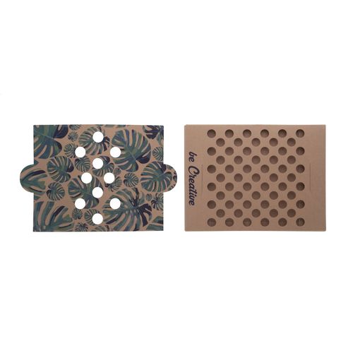 Custom made, kraft paper pen holder. Price includes full colour printing. MOQ: 100 pcs. Delivered flat-packed.