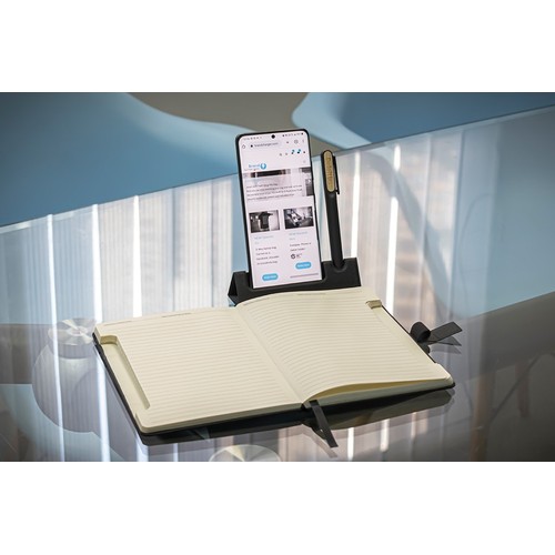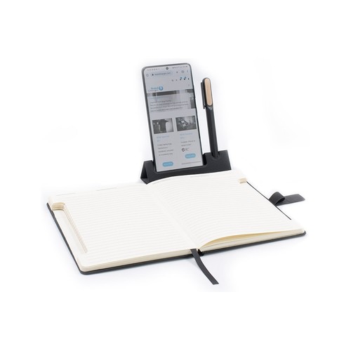 Notebook with Integrated Phone Stand & Pen Holder