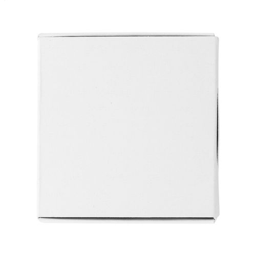 100 pcs custom made, square shaped business cards with full colour printed graphics on both sides. Matte white paper, 350 g/m². In white paper box.