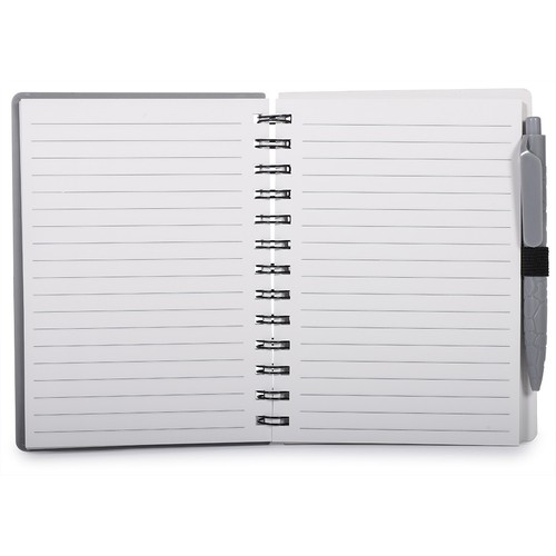 The notepad (S26533) is a practical and sustainable accessory, ideal for those seeking a durable and environmentally friendly product.Perfect for taking notes in any situation, thanks to its water-repellent and tear-resistant stone paper, it offers a long-lasting and reliable solution.Composed of 70 lined sheets made of calcium carbonate and PE, with a cover made of recycled ABS plastic and rigid cardboard, it is accompanied by a ballpoint pen made of recycled ABS plastic.The notepad can be customized with screen printing, ideal for flat color logos.