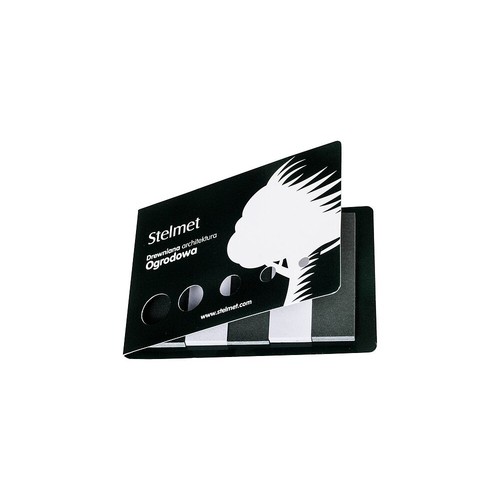 Set of five 13×45 mm paper indexes printed on white adhesive paper, enclosed in an 83×60 mm carton cover made of approx. 300 g paper. The cover is foiled with glossy or matte film and features round holes through which the colors of the markers remain visible.