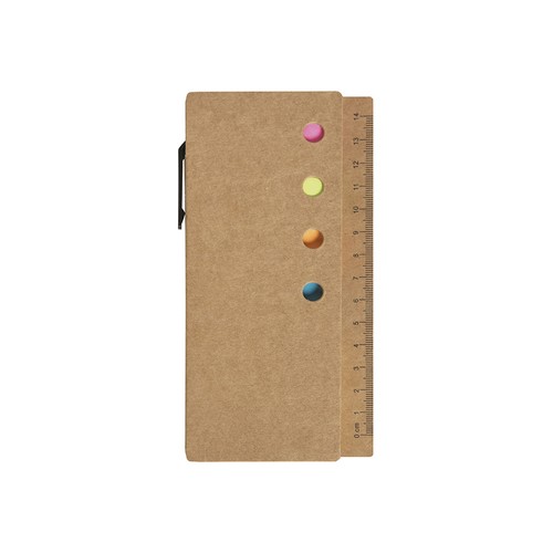 From the Save the Planet collection, the set of adhesive bookmarks made of recycled cardboard, paper, and plastic (S26492) is the ideal accessory for those who wish to organize their documents in an eco-friendly and practical way.Perfect for offices, schools, or home use, this set offers a sustainable solution for marking pages and taking notes, helping to reduce environmental impact.The set consists of a recycled cardboard case and a recycled cardboard ballpoint pen, with adhesive bookmarks made of paper and plastic, ensuring functionality and respect for the environment.The set can be customized with screen printing, ideal for flat color logos.