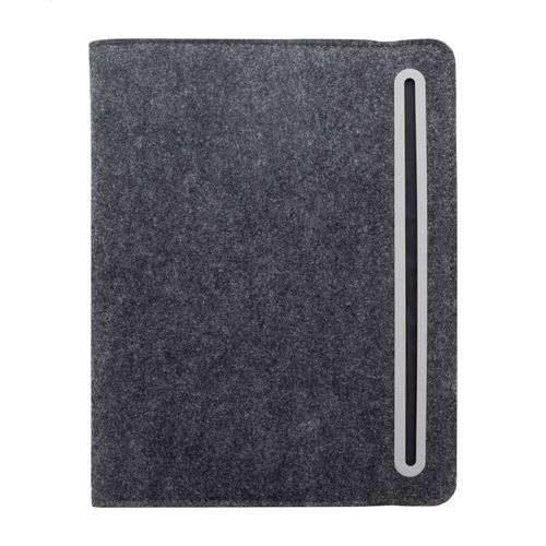 A5 sized, RPET felt document folder with front and multiple inside organizer pockets. With 20 lined sheets notepad in recycled paper.