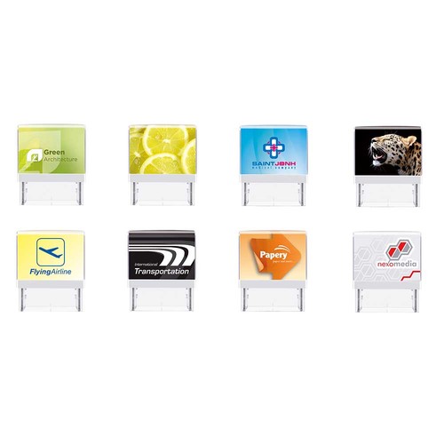 PRINTER 20. Natural rubber stamp plate made of natural rubber. Integrated, exchangeable stamp pad. Individual promotion on the promotional inlay. Further sizes on request. Including online voucher for a stamp free of charge.