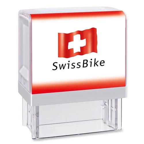 Individual made, constant rubber stamp, made of natural rubber. Integrated, exchangeable stamp pad. Individual Promotion on the promotional inlay. Further sizes on request.