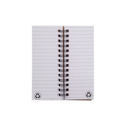 Ecological wheat straw plastic covered spiral notebook with 40 lined sheets in recycled paper, 25 sticky notes and 125 page markers (in 5 different colours). With 12 cm ruler on the cover.