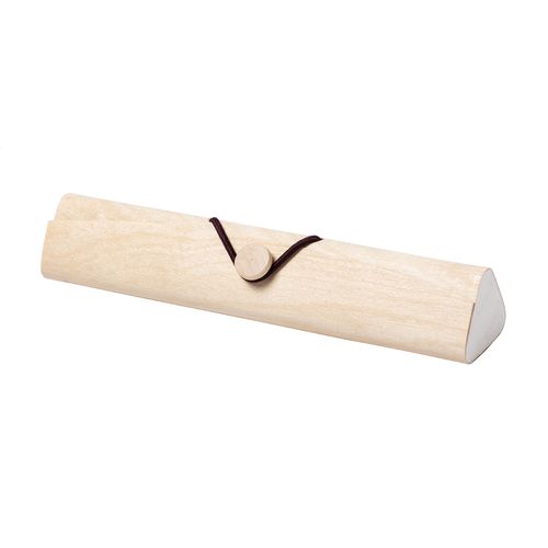 5 pc wooden stationery set in wooden pen case. Including recycled paper ballpoint pen (with blue refill), lead pencil (HB, unsharpened), 15 cm ruler, sharpener and eraser.
