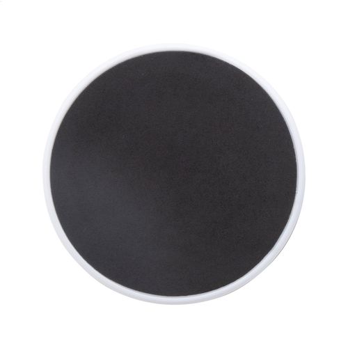 Magnetic desk mobile phone holder in bamboo and recycled ABS. Including self-adhesive metal ring to use the magnetic function on any device. Compatible with iPhone® 12 or newer.