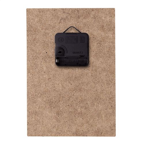 Custom made, rectangle shaped HDF wood wall clock with custom graphic. Operates with 1 AA battery, without battery. MOQ: 50 pcs.
