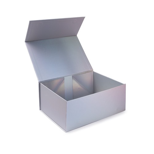 Self-assembling rigid box made of 900 g/m² cardboard with magnetic closure and elegant finish.