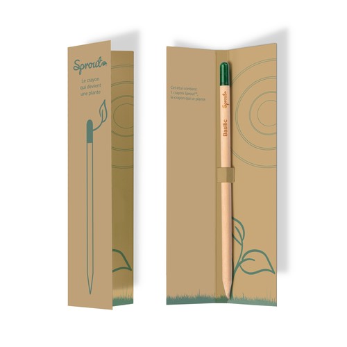Sprout pencil case with infographic in Italian, English, and French illustrating use
