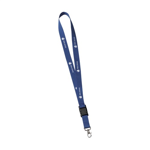 Lanyard made from strong woven polyester, with metal carabiner hook. The lower section is detachable using the quick release plastic clip.