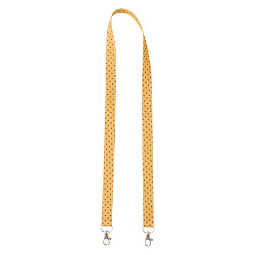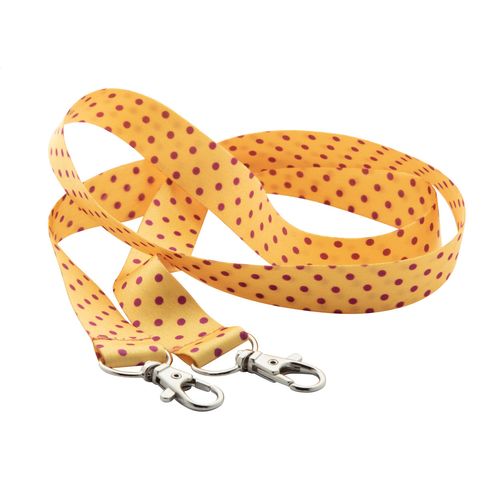 Custom made, RPET lanyard with 2 metal carabiners. With sublimation printed graphics on both sides. MOQ: 100 pcs.