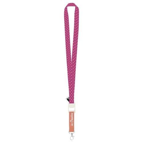 Custom made, RPET lanyard with metal carabiner and bottle opener. With sublimation printed graphics on both sides. MOQ: 100 pcs.