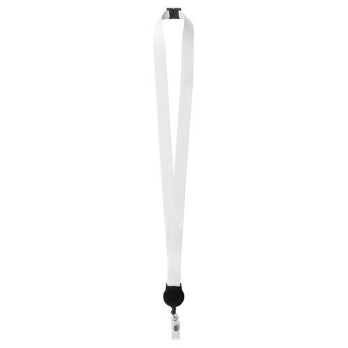 Custom made, polyester lanyard with telescopic badge holder and safety buckle. With sublimation printed graphics on both sides. MOQ: 100 pcs.