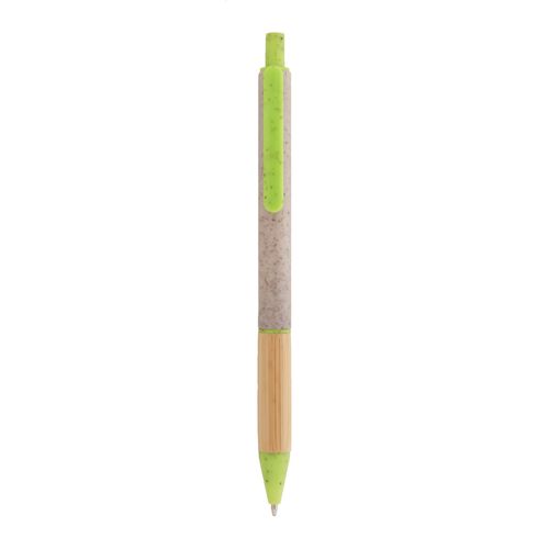 Ecological wheat straw plastic ballpoint pen with bamboo grip and coloured parts. With blue refill.