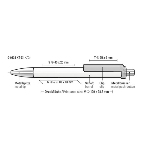 Retractable ballpoint pen with opaque glossy housing, transparent glossy clip, metal tip and metal push-button chrome plated.