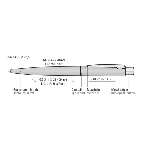 Metal retractable ballpoint pen with softtouch housing. Metal clip and push-button matt chromed.