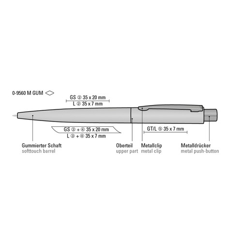 Metal retractable ballpoint pen with softtouch housing. Metal clip and push-button glossy black.