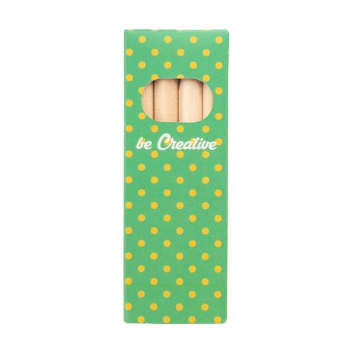 Wooden coloured pencils (4 pcs) in full colour printed paper box. Price includes digital printing. MOQ: 100 pcs.