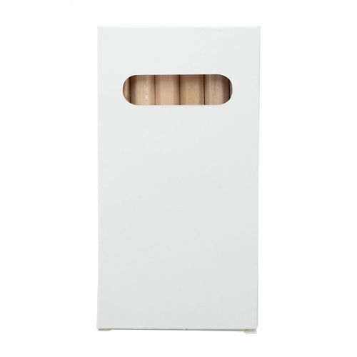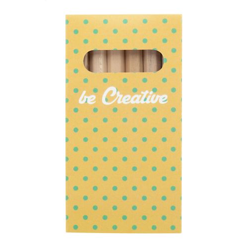Wooden coloured pencils (6 pcs) in full colour printed paper box. Price includes digital printing. MOQ: 100 pcs.