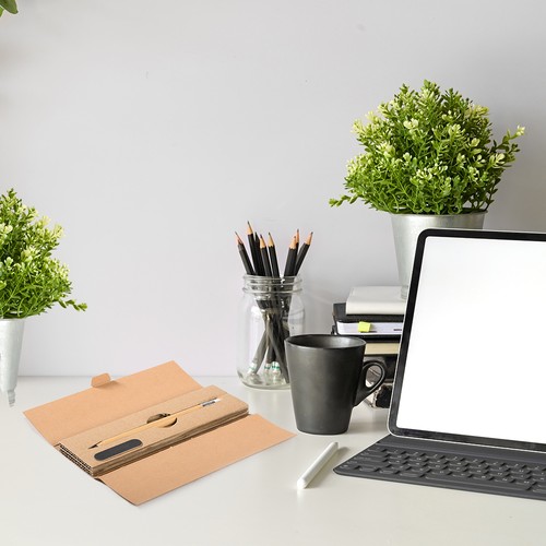From the Save the Planet collection, the bamboo pencil with eraser and metal graphite (B11158) is the perfect accessory for those seeking an eco-friendly and durable solution for everyday writing.Ideal for students, professionals, and creatives, this pencil offers a perpetual writing experience thanks to its metal graphite, eliminating the need for frequent replacements.Made of bamboo, the pencil is lightweight and durable, with an integrated eraser and single packaging in a corrugated cardboard box that includes a file to sharpen the tip.The pencil can be customized with screen printing for flat color logos or pad printing, offering high-quality printing for flat color logos.
