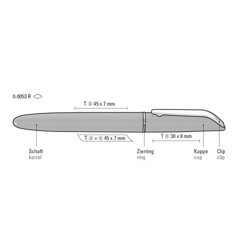 Rollerball with opaque glossy housing. Metal clip and decorative ring chrome plated.