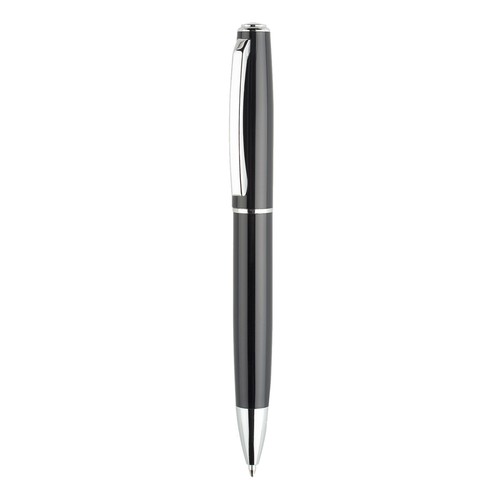 A metal writing set, which includes a metal pen and a ballpoint pen. Massive writing accessories made of metal, with a glossy varnished surface and wide clips. Products are ideal for applying the customer's logo. Twisted closing and opening mechanism in the pen. German quality ink, enough for many meters of writing.