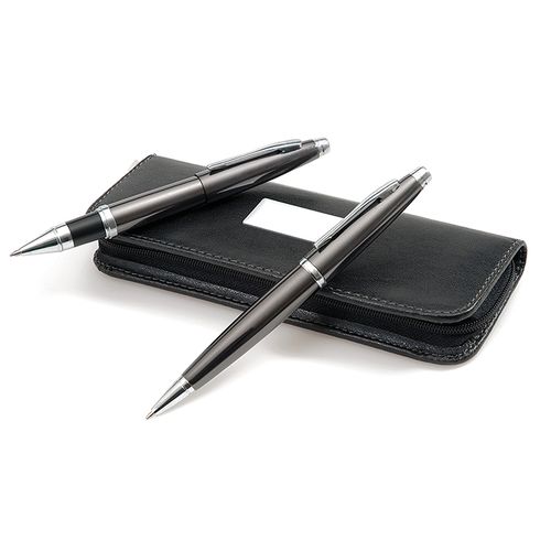 Leatherette hard case with metal label for easy customization