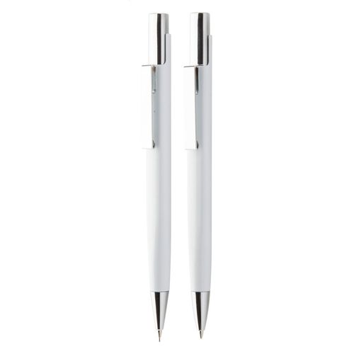 Aluminium pen set with ballpoint pen and mechanical pencil in black gift box. With blue refill and 0,7 mm leads.