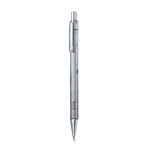 Stylish mechanical pencil made of durable ABS. Translucent grey barrel and matching textured grip, with chrome-plated push button, clip and tip. With eraser and 0.7 mm leads included.