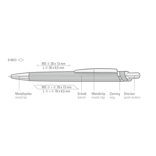 Metal retractable ballpoint pen with matt lacquered aluminium housing. Fittings chrome plated.