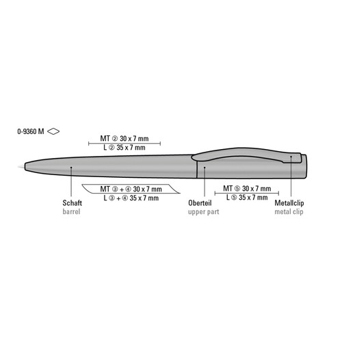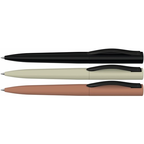 Metal twist ballpoint pen with matt lacquered housing, soft twist mechanism and spring-mounted metal clip in matt black.