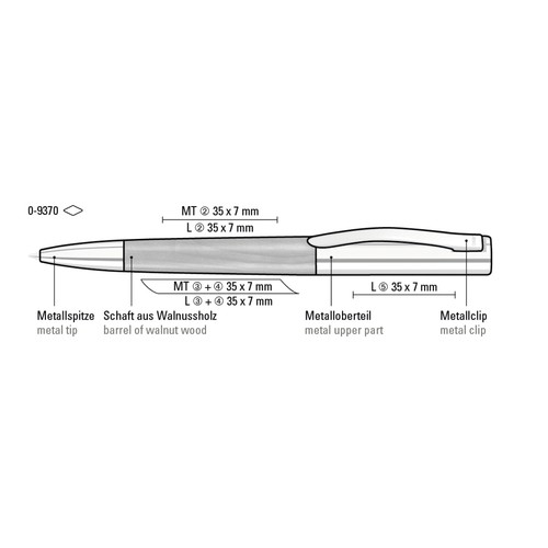Metal twist ballpoint pen with barrel made from FSC® certified walnut wood, soft twist mechanism and spring-mounted clip. Upper part, clip and tip glossy chrome plated. Wood is a natural material with a great variety of colours and textures (grain effect).