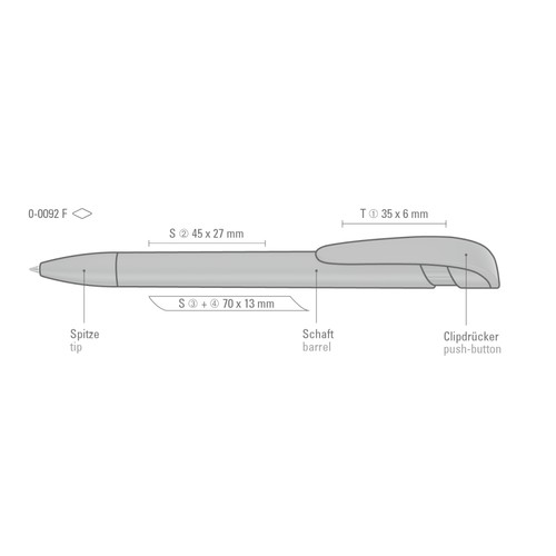 Retractable ballpoint pen with opaque matt housing, wide curved clip button and tip.