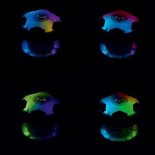 Risk free "indoor" football? Perfect for the kids... and their parents! A luminous (colored LED) indoor football in hovercraft format, remains at ground level on a cushion of air for fun without limits! Perimeter foam protection. Works with 4 AA batteries supplied. Delivered in an individual illustrated box. Branding in 1 Colour, black recommended and by default.