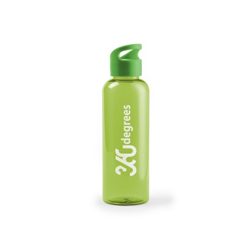 High quality, 530 ml bottle, manufactured in heat resistant, BPA free, tritan material. Available in a wide range of translucent colors, with matching screw-on cap and integrated handle.