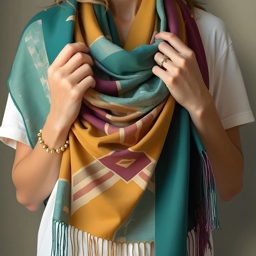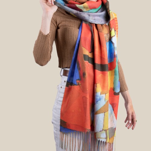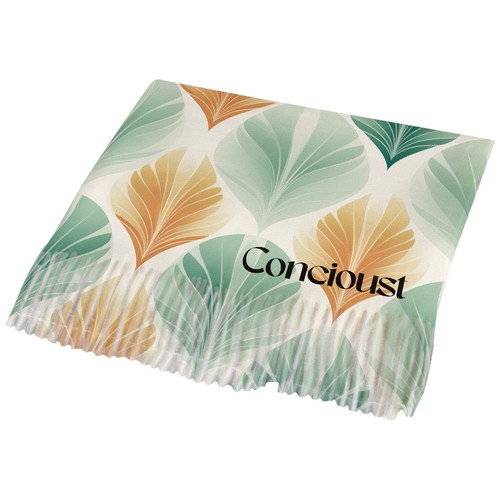Winter shawl with fringes, made of special polyester for customization on the entire surface (1 side). Size 70*180 cms. Minimum order 100 pieces.